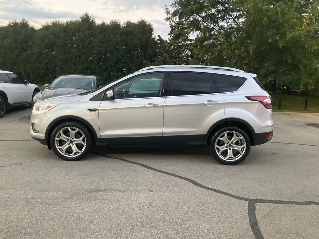 This Escape is well equipped with Equipment Group 400A, Ford Safe & Smart Package (Adaptive Cruise Control & Fwd Collision Warning, Auto High-Beam Headlamps, Blind Spot Info System w/Cross-Traffic Alert, Lane-Keeping System, and Rain-Sensing Wipers), Escape Titanium, 4D Sport Utility, EcoBoost 2.0L I4 GTDi DOHC Turbocharged VCT, 6-Speed Automatic, 4WD, Ingot Silver, Charcoal Black Leather, Panoramic Vista Roof, Power Liftgate, 10 Speakers, 3.07 Axle Ratio, 4-Wheel Disc Brakes, ABS brakes, Air Conditioning, Alloy wheels, AM/FM radio: SiriusXM, AppLink/Apple CarPlay and Android Auto, Auto-dimming Rear-View mirror, Automatic temperature control, Brake assist, Bumpers: body-color, CD player, Compass, Delay-off headlights, Driver door bin, Driver vanity mirror, Dual front impact airbags, Dual front side impact airbags, Electronic Stability Control, Emergency communication system: SYNC 3 911 Assist, Exterior Parking Camera Rear, Four wheel independent suspension, Front anti-roll bar, Front Bucket Seats, Front Center Armrest, Front dual zone A/C, Front fog lights, Front reading lights, Fully automatic headlights, Garage door transmitter, Heated door mirrors, Heated front seats, Heated Leather-Trimmed Front Bucket Seats, Heated steering wheel, High-Intensity Discharge Headlights, Illuminated entry, Knee airbag, Leather Shift Knob, Low tire pressure warning, Memory seat, Navigation System, Occupant sensing airbag, Outside temperature display, Overhead airbag, Overhead console, Panic alarm, Passenger door bin, Passenger vanity mirror, Power door mirrors, Power driver seat, Power passenger seat, Power steering, Power windows, Radio data system, Radio: AM/FM Stereo w/Single-CD/MP3 Player, Rear anti-roll bar, Rear reading lights, Rear seat center armrest, Rear window defroster, Rear window wiper, Remote keyless entry, Roof rack: rails only, Security system, Speed control, Speed-sensing steering, Split folding rear seat, Steering wheel mounted audio controls, SYNC 3 Communications & Entertainment System, SYNC Connect, Tachometer, Telescoping steering wheel, Tilt steering wheel, Traction control, Trip computer, Turn signal indicator mirrors, Variably intermittent wipers, Voice-Activated Touchscreen Navigation System, Wheels: 18" Sparkle Silver-Painted Aluminum, and Wheels: 19" Bright-Machined Aluminum.