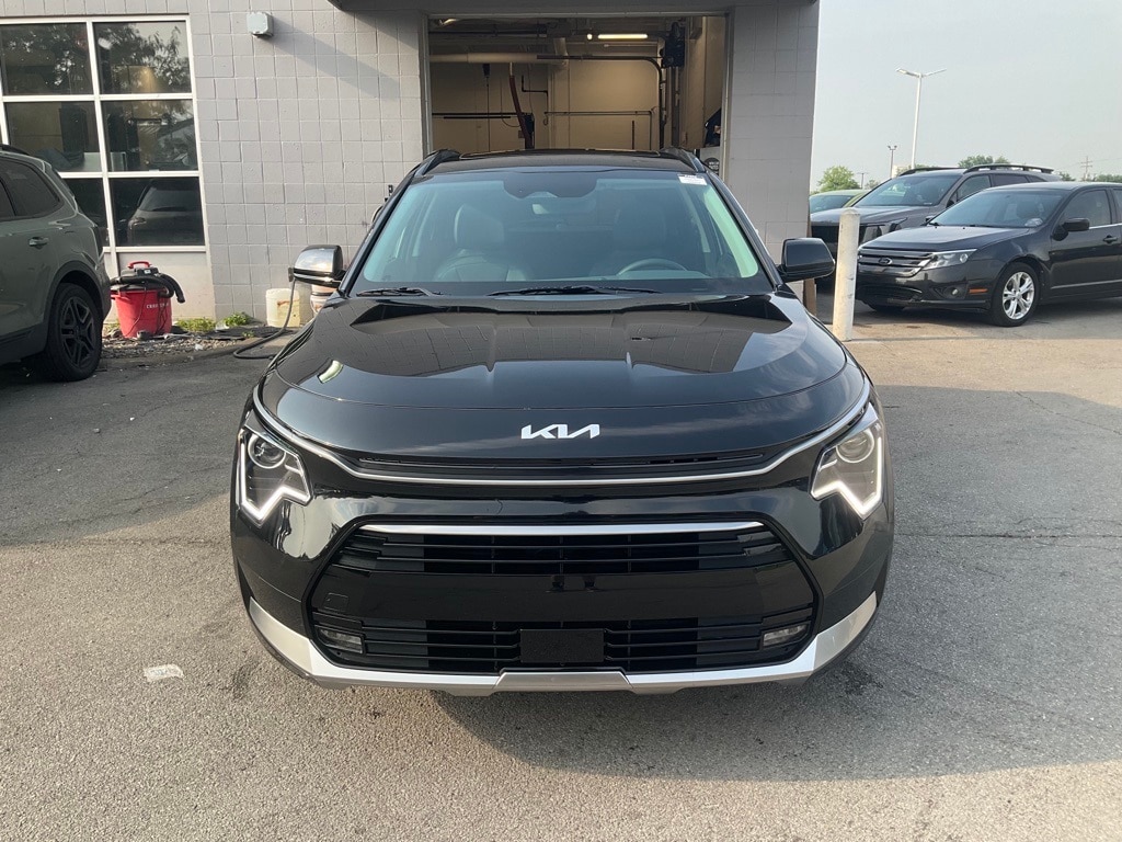 This Niro is well equipped with Niro EX Touring, 4D Sport Utility, 1.6L I4 DGI Hybrid DOHC 16V LEV3-SULEV30, 6-Speed Dual Clutch, FWD, Aurora Black Pearl, Charcoal Cloth, 2-Level Cargo Mat, 4-Wheel Disc Brakes, 6 Speakers, ABS brakes, Air Conditioning, Alloy wheels, AM/FM radio: SiriusXM, Apple CarPlay & Android Auto, Auto High-beam Headlights, Automatic temperature control, Brake assist, Bumpers: body-color, Cargo Cover, Cloth & Vegan Leather-Trimmed Seats, Delay-off headlights, Driver door bin, Driver vanity mirror, Dual front impact airbags, Dual front side impact airbags, Electronic Stability Control, Emergency communication system: Kia Connect (includes 1 year free trial), Exterior Parking Camera Rear, Four wheel independent suspension, Front anti-roll bar, Front Bucket Seats, Front Center Armrest, Front dual zone A/C, Front fog lights, Front reading lights, Fully automatic headlights, Heated door mirrors, Heated Front Bucket Seats (3-Steps), Heated front seats, Illuminated entry, Knee airbag, Leather Shift Knob, Low tire pressure warning, Navigation System, Occupant sensing airbag, Outside temperature display, Overhead airbag, Overhead console, Panic alarm, Passenger door bin, Passenger vanity mirror, Power door mirrors, Power driver seat, Power moonroof, Power steering, Power windows, Radio: AM/FM/HD/SiriusXM, Rain sensing wipers, Rear anti-roll bar, Rear seat center armrest, Rear window defroster, Rear window wiper, Remote keyless entry, Security system, Speed control, Speed-sensing steering, Split folding rear seat, Spoiler, Steering wheel mounted audio controls, Telescoping steering wheel, Tilt steering wheel, Traction control, Trip computer, Turn signal indicator mirrors, Variably intermittent wipers, and Wheels: 7.5J x 18" Machine Finished Alloy.