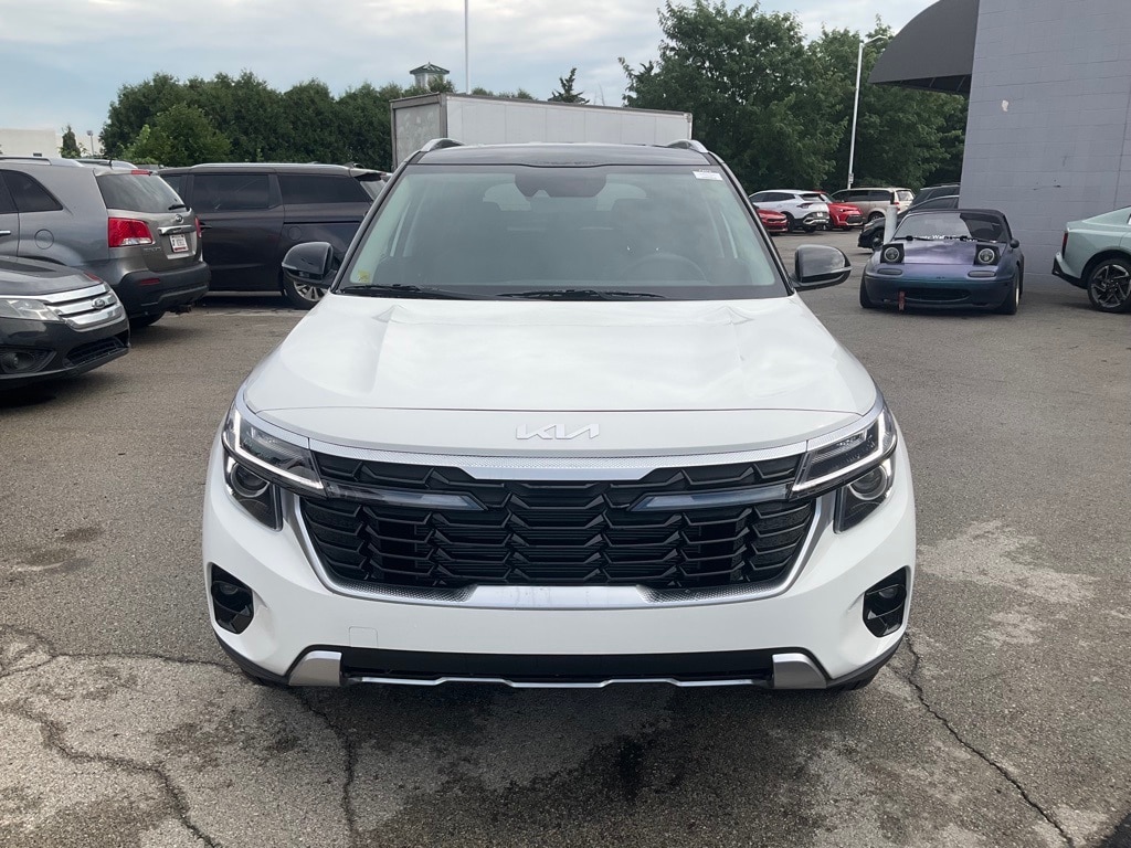 This Seltos is well equipped with Seltos S, 4D Sport Utility, 2.0L I4 MPI, CVT, AWD, Clear White/Black Roof, Black w/Artificial Leather Seat Trim, ABS brakes, Alloy wheels, Electronic Stability Control, Heated door mirrors, Heated front seats, Illuminated entry, Low tire pressure warning, Navigation System, Remote keyless entry, Traction control, 4-Wheel Disc Brakes, 6 Speakers, Air Conditioning, AM/FM radio: SiriusXM, Apple CarPlay & Android Auto, Auto High-beam Headlights, Automatic temperature control, Brake assist, Bumpers: body-color, Cloth & Artificial Leather Seat Trim, Delay-off headlights, Driver door bin, Driver vanity mirror, Dual front impact airbags, Dual front side impact airbags, Emergency communication system: 911 Connect, Exterior Parking Camera Rear, Four wheel independent suspension, Front anti-roll bar, Front Bucket Seats, Front Center Armrest, Front fog lights, Front reading lights, Fully automatic headlights, Heated Front Bucket Seats (3-Steps), Leather Shift Knob, Leather steering wheel, Occupant sensing airbag, Outside temperature display, Overhead airbag, Overhead console, Panic alarm, Passenger door bin, Passenger vanity mirror, Power door mirrors, Power steering, Power windows, Radio: AM/FM/HD/Satellite Display System w/Navigation, Rear seat center armrest, Rear window defroster, Rear window wiper, Security system, Speed control, Speed-sensing steering, Split folding rear seat, Spoiler, Steering wheel mounted audio controls, Tachometer, Telescoping steering wheel, Tilt steering wheel, Trip computer, Turn signal indicator mirrors, Variably intermittent wipers, and Wheels: 17" Alloy w/Machined Finish.