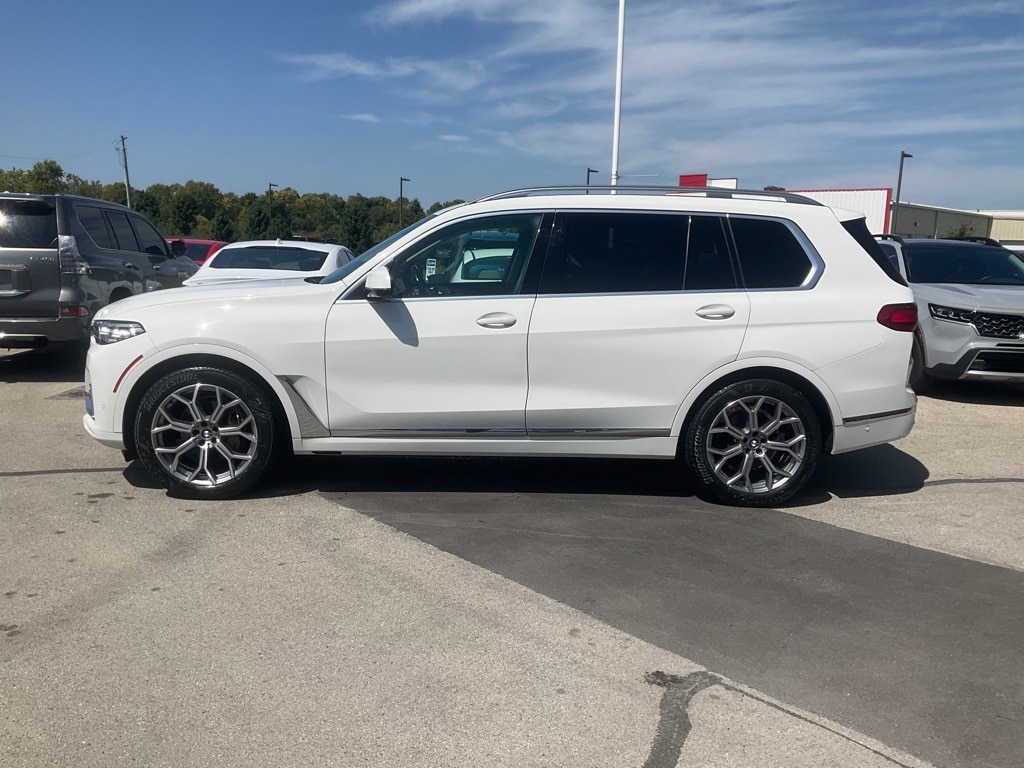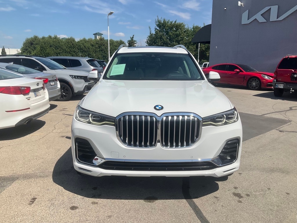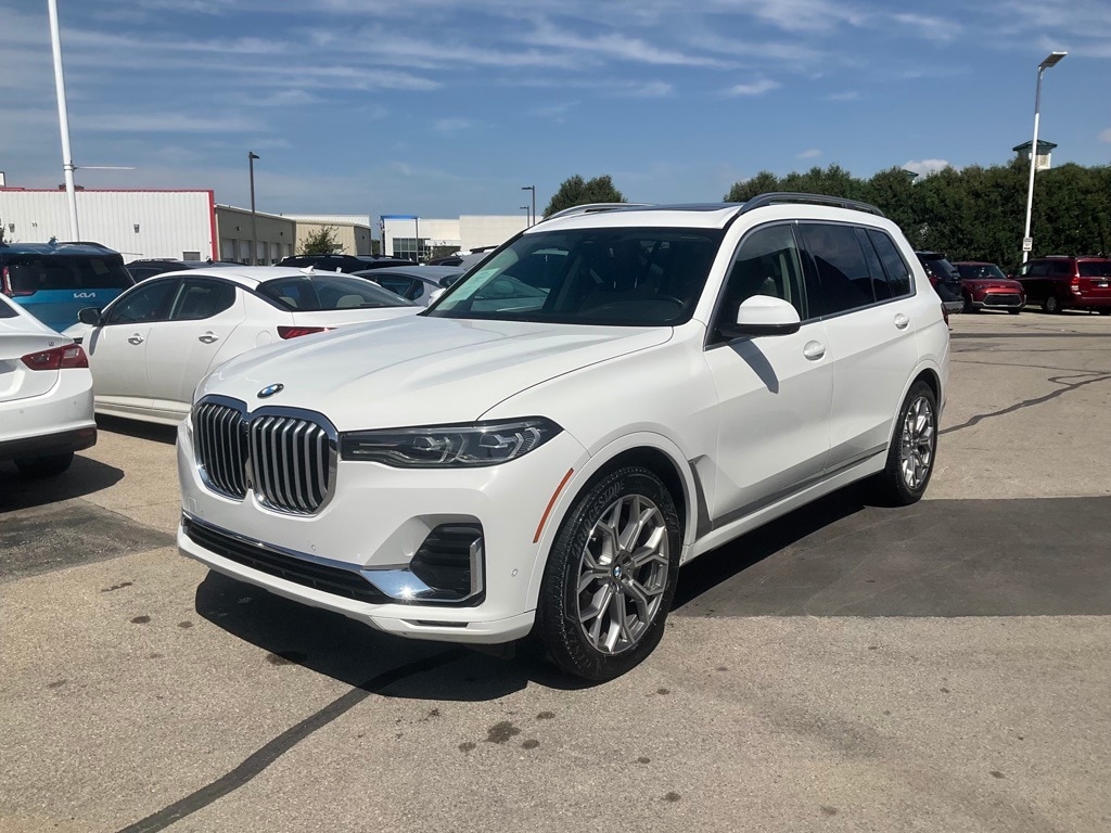 This X7 is well equipped with Connected Package Pro, Parking Assistance Package (Drive Recorder, Parking Assistant Plus, Rear-View Camera, and Surround View w/3D View), X7 xDrive40i, 4D Sport Utility, 3.0L I6 DOHC 24V, 8-Speed Automatic, AWD, Alpine White, Black w/SensaTec Upholstery, Navigation System, Power moonroof, 10 Speakers, 3.64 Axle Ratio, 3rd row seats: split-bench, 4-Wheel Disc Brakes, 5-Zone Automatic Climate Control, ABS brakes, Air Conditioning, Alloy wheels, AM/FM radio: SiriusXM with 360L, AM/FM Stereo, Apple CarPlay & Android Auto Compatibility, Apple CarPlay Compatibility, Auto High-beam Headlights, Auto tilt-away steering wheel, Auto-dimming door mirrors, Auto-dimming Rear-View mirror, Auto-leveling suspension, Automatic temperature control, BMW Assist eCall, BMW TeleServices, Brake assist, Bumpers: body-color, Compass, ConnectedDrive Services, Delay-off headlights, Driver door bin, Driver vanity mirror, Dual front impact airbags, Dual front side impact airbags, Electronic Stability Control, Emergency communication system: BMW Assist eCall, Exterior Parking Camera Rear, Four wheel independent suspension, Front anti-roll bar, Front Bucket Seats, Front Center Armrest, Front dual zone A/C, Front fog lights, Front reading lights, Fully automatic headlights, Garage door transmitter, Genuine wood console insert, Genuine wood dashboard insert, Genuine wood door panel insert, Head restraints memory, Heated door mirrors, Heated front seats, Heated Sport Seats, Heated steering wheel, Hi-Fi Sound System, Illuminated entry, Knee airbag, Leather Shift Knob, Live Cockpit Pro w/Navi, Low tire pressure warning, Lumbar Support, Memory seat, Occupant sensing airbag, Outside temperature display, Overhead airbag, Panic alarm, Passenger door bin, Passenger vanity mirror, Power adjustable front head restraints, Power door mirrors, Power driver seat, Power Front Seats, Power passenger seat, Power steering, Power windows, Radio data system, Rain sensing wipers, Rear air conditioning, Rear anti-roll bar, Rear dual zone A/C, Rear reading lights, Rear seat center armrest, Rear window defroster, Rear window wiper, Reclining 3rd row seat, Remote keyless entry, Roof rack: rails only, Security system, SensaTec Upholstery, SiriusXM w/360L, Speed control, Speed-sensing steering, Speed-Sensitive Wipers, Split folding rear seat, Spoiler, Sport steering wheel, Steering wheel memory, Steering wheel mounted audio controls, Tachometer, Telescoping steering wheel, Tilt steering wheel, Traction control, Trailer Hitch, Trip computer, Turn signal indicator mirrors, Variably intermittent wipers, and Wheels: 21" x 9.5" Y-Spoke Bi-Color.
