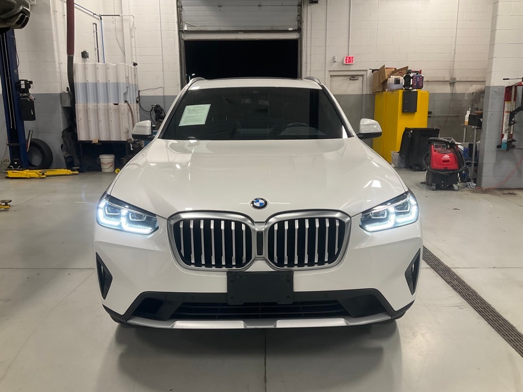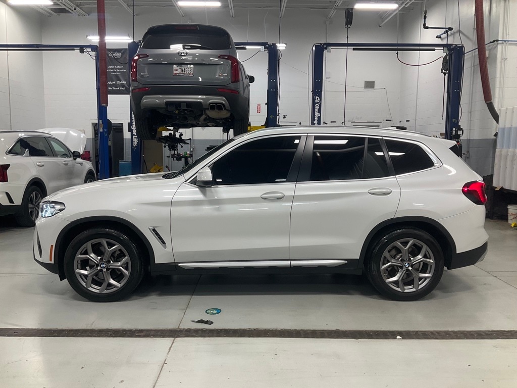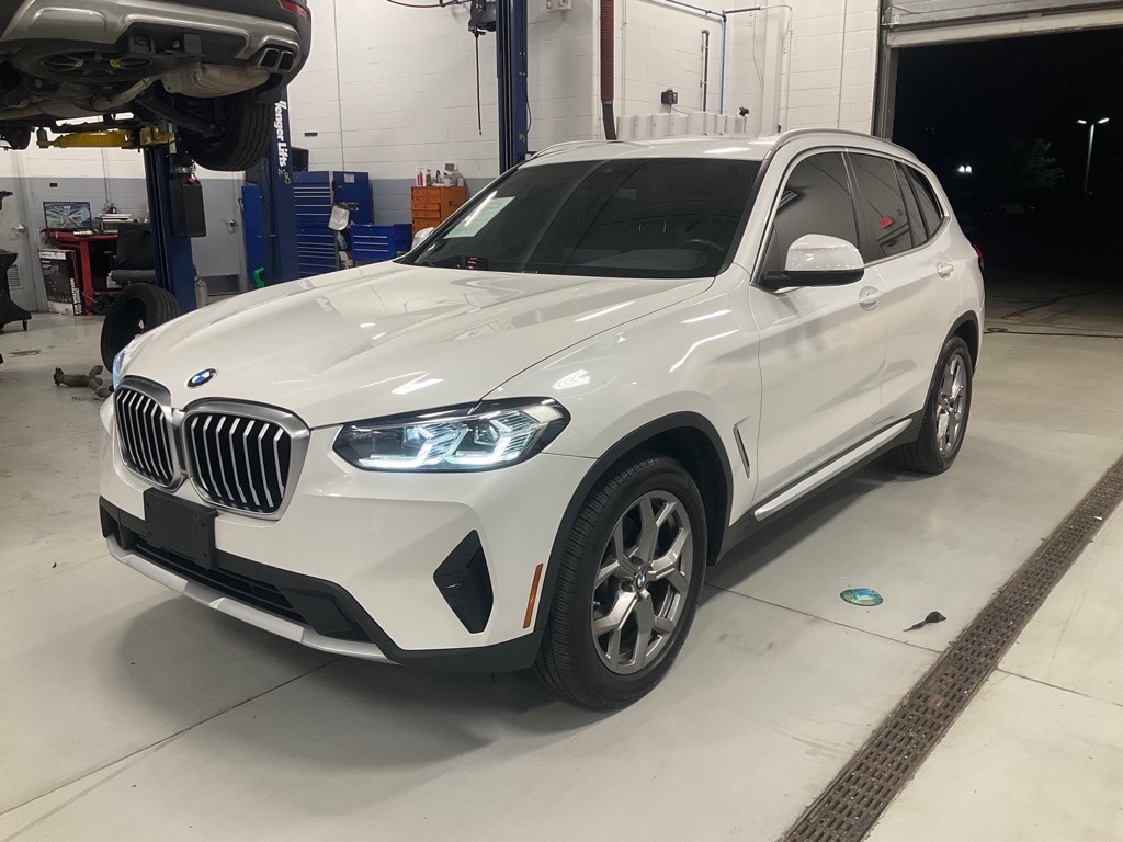 This X3 is well equipped with Connected Package Pro, Premium Package 2 (ZPA) (Gesture Control, Heated Front Seats, Heated Steering Wheel, Lumbar Support, Panoramic Moonroof (ZPA), and Reinforced Brakes), X3 xDrive30i, 4D Sport Utility, 2.0L I4 TwinPower Turbo, 8-Speed Automatic Sport, AWD, Mineral White Metallic, Black Artificial Leather, Navigation, 12 Speakers, 3.385 Axle Ratio, 4-Wheel Disc Brakes, ABS brakes, Air Conditioning, Alloy wheels, AM/FM Radio, AM/FM radio: SiriusXM with 360L, Apple CarPlay & Android Auto Compatibility, Auto High-beam Headlights, Auto-dimming door mirrors, Auto-dimming Rear-View mirror, Automatic temperature control, BMW Assist eCall, BMW TeleServices, Brake assist, Bumpers: body-color, Comfort Access Keyless Entry, ConnectedDrive Services, Delay-off headlights, Driver door bin, Driver vanity mirror, Dual front impact airbags, Dual front side impact airbags, Electronic Stability Control, Emergency communication system: BMW Assist eCall, Enhanced Bluetooth, Exterior Parking Camera Rear, Fine Wood Open-Pored Ash Grain Trim, Four wheel independent suspension, Front anti-roll bar, Front Bucket Seats, Front Center Armrest, Front dual zone A/C, Front reading lights, Fully automatic headlights, Garage door transmitter, Genuine wood dashboard insert, Genuine wood door panel insert, Heated door mirrors, Hi-Fi Sound System, Illuminated entry, Knee airbag, Live Cockpit Pro w/Navigation, Low tire pressure warning, Memory seat, Navigation System, Occupant sensing airbag, Outside temperature display, Overhead airbag, Panic alarm, Passenger door bin, Passenger vanity mirror, Perforated SensaTec Upholstery, Power door mirrors, Power driver seat, Power Front Seats, Power Liftgate, Power passenger seat, Power steering, Power windows, Radio data system, Rain sensing wipers, Rear air conditioning, Rear anti-roll bar, Rear Manual Side Window Shades, Rear reading lights, Rear seat center armrest, Rear window defroster, Rear window wiper, Remote Engine Start, Remote keyless entry, Roof rack: rails only, Security system, SiriusXM w/360L, Speed control, Speed-sensing steering, Speed-Sensitive Wipers, Split folding rear seat, Spoiler, Sport Seats, Sport steering wheel, Steering wheel mounted audio controls, Tachometer, Telescoping steering wheel, Tilt steering wheel, Traction control, Trip computer, Turn signal indicator mirrors, Variably intermittent wipers, Wheels: 19" x 7.5" Y-Spoke (Style 693), and WiFi Hotspot.