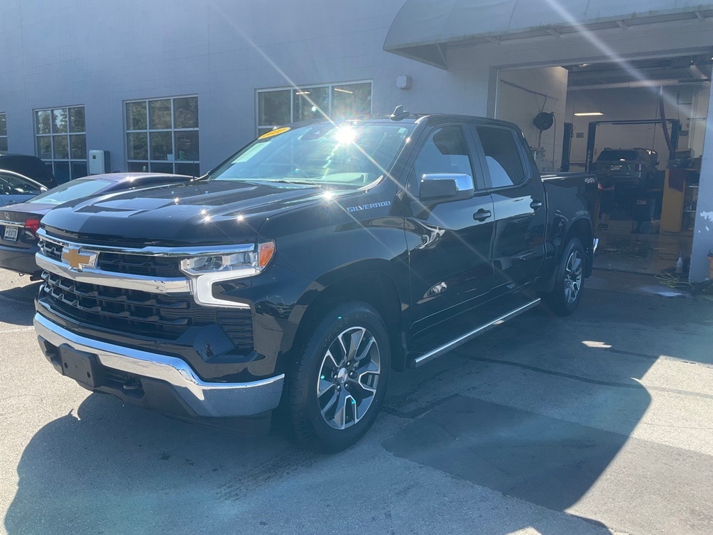 This Silverado 1500 is well equipped with Convenience Package (10-Way Power Driver Seat w/Lumbar, 120-Volt Instrument Panel Power Outlet, Dual Rear USB Ports (Charge Only), Dual-Zone Automatic Climate Control, Heated Driver & Front Outboard Passenger Seats, Heated Steering Wheel, Keyless Open & Start, Leather Wrapped Steering Wheel, Manual Tilt/Telescoping Steering Column, and 120-Volt Bed Mounted Power Outlet), High Capacity Suspension Package, Standard Suspension Package, Trailering Package (Hitch Guidance), Silverado 1500 LT, 4D Crew Cab, 2.7L Turbo, 8-Speed Automatic, 4WD, Black, Black Cloth, 12.3" Multicolor Reconfigurable Digital Display, 3.42 Rear Axle Ratio, 4-Wheel Disc Brakes, 40/20/40 Front Split-Bench Seat, 6 Speakers, 6-Speaker Audio System, ABS brakes, Air Conditioning, All-Star Edition, Alloy wheels, AM/FM radio: SiriusXM with 360L, Apple CarPlay/Android Auto, Auto High-beam Headlights, Auto-Locking Rear Differential, Automatic Emergency Braking, Automatic temperature control, Bluetooth® For Phone, Brake assist, Bumpers: chrome, Chevrolet Connected Access Capable, Chrome Mirror Caps, Cloth Seat Trim, Color-Keyed Carpeting Floor Covering, Compass, Deep-Tinted Glass, Delay-off headlights, Driver door bin, Driver vanity mirror, Dual front impact airbags, Dual front side impact airbags, Electric Rear-Window Defogger, Electrical Steering Column Lock, Electronic Cruise Control, Electronic Stability Control, Following Distance Indicator, Forward Collision Alert, Front anti-roll bar, Front Center Armrest w/Storage, Front dual zone A/C, Front Frame-Mounted Black Recovery Hooks, Front License Plate Kit, Front Pedestrian Braking, Front reading lights, Front wheel independent suspension, Fully automatic headlights, HD Rear Vision Camera, Heated door mirrors, Heated front seats, Heated steering wheel, Illuminated entry, IntelliBeam Automatic High Beam On/Off, Lane Keep Assist w/Lane Departure Warning, LED Cargo Area Lighting, Low tire pressure warning, Not Equipped w/Steering Column Lock, Occupant sensing airbag, OnStar & Chevrolet Connected Services Capable, Outside temperature display, Overhead airbag, Overhead console, Panic alarm, Passenger door bin, Passenger vanity mirror, Power door mirrors, Power driver seat, Power Front Windows w/Driver Express Up/Down, Power Front Windows w/Passenger Express Down, Power Rear Windows w/Express Down, Power steering, Power windows, Premium audio system: Chevrolet Infotainment 3 Premium, Radio data system, Radio: Chevrolet Infotainment 3 Premium System, Rear 60/40 Folding Bench Seat (Folds Up), Rear reading lights, Rear step bumper, Rear window defroster, Remote keyless entry, Remote Vehicle Starter System, Security system, SiriusXM w/360L, Speed control, Speed-sensing steering, Split folding rear seat, Steering Wheel Audio Controls, Steering wheel mounted audio controls, Tachometer, Telescoping steering wheel, Theft Deterrent System (Unauthorized Entry), Tilt steering wheel, Traction control, Trip computer, Variably intermittent wipers, Voltmeter, Wheels: 18" x 8.5" Bright Silver Painted Aluminum, Wheels: 20" x 9" Painted Aluminum, Wi-Fi Hot Spot Capable, and Wireless Phone Projection.