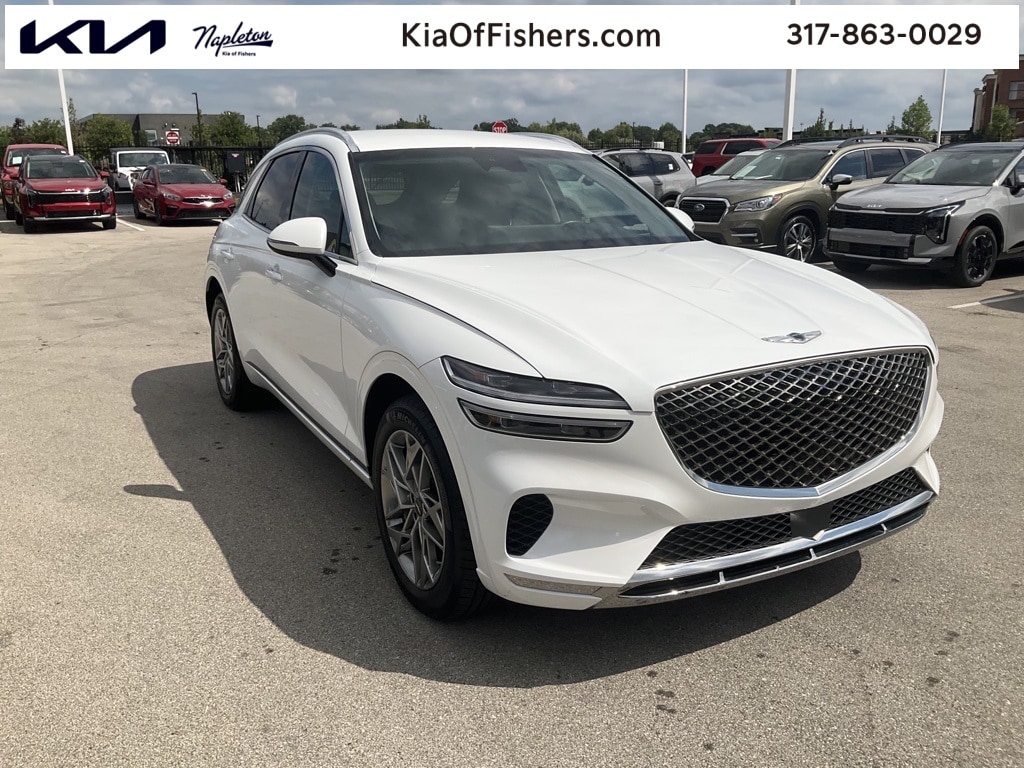 This GV70 is well equipped with Option Group 01, GV70 2.5T, 4D Sport Utility, 2.5L DOHC, 8-Speed Automatic with SHIFTRONIC, AWD, Uyuni White, Black/Black Artificial Leather, Navigation System, 4-Wheel Disc Brakes, 9 Speakers, ABS brakes, Air Conditioning, Alloy wheels, AM/FM radio: SiriusXM, Android Auto & Apple CarPlay, Anti-whiplash front head restraints, Auto High-beam Headlights, Auto-dimming Rear-View mirror, Automatic temperature control, Brake assist, Bumpers: body-color, Delay-off headlights, Driver door bin, Driver vanity mirror, Dual front impact airbags, Dual front side impact airbags, Electronic Stability Control, Emergency communication system: Genesis Connected Services, Exterior Parking Camera Rear, Four wheel independent suspension, Front anti-roll bar, Front Bucket Seats, Front Center Armrest w/Storage, Front dual zone A/C, Front reading lights, Fully automatic headlights, Garage door transmitter: HomeLink, Heated door mirrors, Heated Front Bucket Seats, Heated front seats, Illuminated entry, Knee airbag, Leather steering wheel, Leatherette Seating Surfaces, Low tire pressure warning, Occupant sensing airbag, Outside temperature display, Overhead airbag, Overhead console, Panic alarm, Passenger door bin, Passenger vanity mirror, Power door mirrors, Power driver seat, Power Liftgate, Power passenger seat, Power steering, Power windows, Radio: 14.5" Navigation System w/AM/FM/HD Radio, Rain sensing wipers, Rear anti-roll bar, Rear Parking Sensors, Rear reading lights, Rear seat center armrest, Rear window defroster, Rear window wiper, Remote keyless entry, Security system, Speed control, Speed-sensing steering, Speed-Sensitive Wipers, Split folding rear seat, Spoiler, Steering wheel mounted audio controls, Tachometer, Telescoping steering wheel, Traction control, Trip computer, Turn signal indicator mirrors, Variably intermittent wipers, and Wheels: 19" Dark Hyper Silver Alloy.