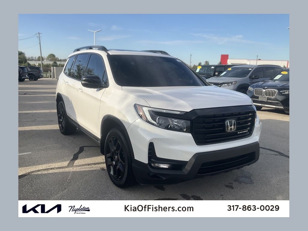 This Passport is well equipped with HPD+ Package (Fender Flares (PPO), Front Grille (PPO), Tail Light Accents (PPO), and Wheels: 20" HPD Alloy (PPO)), Passport Black Edition, 4D Sport Utility, 3.5L V6 24V SOHC i-VTEC, 9-Speed Automatic, AWD, Platinum White Pearl, Black w/Leather-Trimmed Seats, Navigation system: Honda Satellite-Linked Navigation System, Power Liftgate, Power moonroof, 10 Speakers, 4-Wheel Disc Brakes, 4.334 Axle Ratio, A/V remote: CabinControl, ABS brakes, Air Conditioning, Alloy wheels, AM/FM radio: SiriusXM, Apple CarPlay/Android Auto, Auto High-beam Headlights, Auto-dimming door mirrors, Auto-dimming Rear-View mirror, Automatic temperature control, Blind Spot Information (BSI) System warning, Brake assist, Bumpers: body-color, Compass, Delay-off headlights, Driver door bin, Driver vanity mirror, Driver's Seat Mounted Armrest, Dual front impact airbags, Dual front side impact airbags, Electronic Stability Control, Emergency communication system: HondaLink, Exterior Parking Camera Rear, Four wheel independent suspension, Front anti-roll bar, Front Bucket Seats, Front Center Armrest, Front dual zone A/C, Front fog lights, Front reading lights, Fully automatic headlights, Garage door transmitter: HomeLink, Heated & Ventilated Front Bucket Seats, Heated door mirrors, Heated front seats, Heated rear seats, Heated steering wheel, Illuminated entry, Lane departure: Lane Keeping Assist System (LKAS) active, Leather-Trimmed Seats, Low tire pressure warning, Occupant sensing airbag, Outside temperature display, Overhead airbag, Overhead console, Panic alarm, Passenger door bin, Passenger seat mounted armrest, Passenger vanity mirror, Power door mirrors, Power driver seat, Power passenger seat, Power steering, Power windows, Radio data system, Radio: 540-Watt Premium Audio System w/10 Speakers, Rain sensing wipers, Rear air conditioning, Rear anti-roll bar, Rear reading lights, Rear seat center armrest, Rear window defroster, Rear window wiper, Remote keyless entry, Security system, Speed control, Speed-sensing steering, Split folding rear seat, Spoiler, Steering wheel mounted audio controls, Tachometer, Telescoping steering wheel, Tilt steering wheel, Traction control, Trip computer, Turn signal indicator mirrors, Variably intermittent wipers, Ventilated front seats, and Wheels: 20" Berlina Black Alloy.