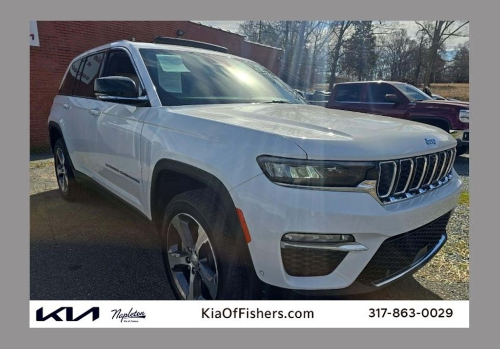 This Grand Cherokee is well equipped with Luxury Tech Group II (2nd-Row Manual Window Shades, Auto-Dimming Exterior Driver Mirror, Capri Leather Seats w/Perforated Inserts, Integrated Off-Road Camera, Intersection Collision Assist System, Memory Steering Column, ParkSense Front/Rear Park Assist w/Stop, Passive Entry - Front/Rear Doors, Liftgate, Power Tilt/Telescope Steering Column, Rain Sensitive Windshield Wipers, Rear Back Up Camera Washer, Rearview Autodim Digital Display Mirror, Surround View Camera System, Ventilated Front Seats, and Wireless Charging Pad), Quick Order Package 27F, Grand Cherokee 4xe Base, 4D Sport Utility, 2.0L I4 DOHC, 8-Speed Automatic, 4WD, Bright White Clearcoat, Tan Leather, Dual-Pane Panoramic Sunroof (DISC), GPS Navigation, Power Liftgate, 10 Speakers, 10.1" Touchscreen Display, 3.70 Rear Axle Ratio, 4-Wheel Disc Brakes, 4G LTE Wi-Fi Hot Spot, ABS brakes, Air Conditioning, All Radio Equipped Vehicles, Alloy wheels, AM/FM radio: SiriusXM with 360L, Anti-whiplash front head restraints, Apple CarPlay, Audio memory, Auto High-beam Headlights, Automatic temperature control, Brake assist, Bumpers: body-color, Capri Leather Seats, Compass, Connected Travel & Traffic Services, Connectivity - US/Canada, Delay-off headlights, Disassociated Touchscreen Display, Driver door bin, Driver vanity mirror, Dual front impact airbags, Dual front side impact airbags, Electronic Stability Control, For Details, Visit DriveUconnect.com, For More Info, Call 800-643-2112, Four wheel independent suspension, Front anti-roll bar, Front Bucket Seats, Front Center Armrest w/Storage, Front dual zone A/C, Front fog lights, Front Passenger Interactive Display, Front reading lights, Fully automatic headlights, Garage door transmitter, Global Telematics Box Module (TBM), Google Android Auto, GPS Antenna Input, HD Radio, Heated door mirrors, Heated front seats, Heated rear seats, Heated steering wheel, Heavy Duty Suspension, Illuminated entry, Integrated Center Stack Radio, Integrated Voice Command w/Bluetooth, Knee airbag, Leather steering wheel, Low tire pressure warning, Memory seat, Occupant sensing airbag, Outside temperature display, Overhead airbag, Overhead console, Panic alarm, ParkView Rear Back-Up Camera, Passenger door bin, Passenger vanity mirror, Power door mirrors, Power driver seat, Power passenger seat, Power steering, Power windows, Pur Wrapped Instrument Panel, Radio data system, Radio: Uconnect 5 Nav w/10.1" Display, Radio: Uconnect 5 w/8.4" Display, Rear anti-roll bar, Rear reading lights, Rear window defroster, Rear window wiper, Remote keyless entry, Roof rack: rails only, Security system, SiriusXM Radio Service, SiriusXM Satellite Radio, SiriusXM w/360L, Speed control, Speed-Sensitive Wipers, Split folding rear seat, Spoiler, Steering wheel mounted audio controls, Tachometer, Telescoping steering wheel, Tilt steering wheel, Traction control, Trip computer, Turn signal indicator mirrors, USB Host Flip, Variably intermittent wipers, Voltmeter, and Wheels: 18" x 8" Full