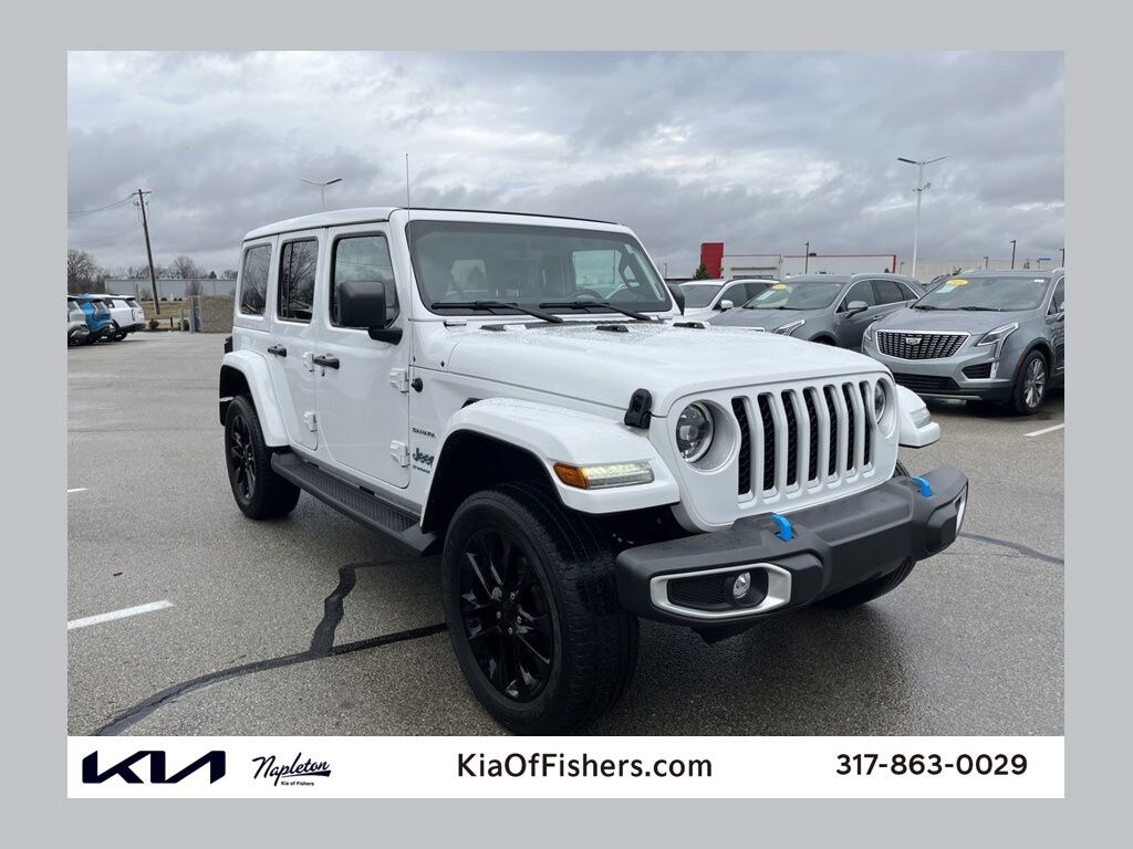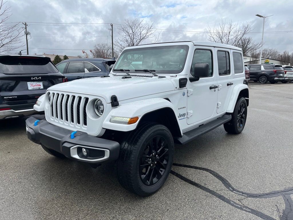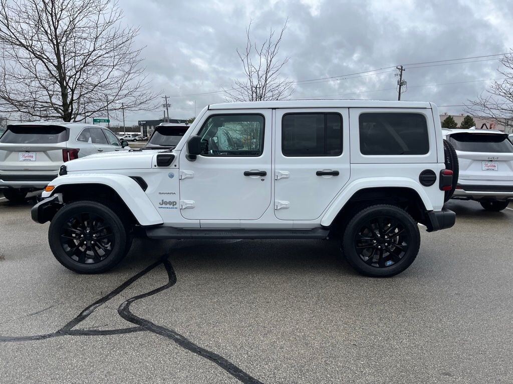 This Wrangler is well equipped with Cold Weather Group (Heated Front Seats, Heated Steering Wheel, and Remote Start System), Quick Order Package 29P Sahara, Wrangler Sahara 4xe, 4D Sport Utility, 2.0L I4 DOHC, 8-Speed Automatic, 4WD, Bright White Clearcoat, Black Leather, Navigation System, Radio: Uconnect 4C Nav w/8.4" Display, Sky 1-Touch Power Top, 3.73 Rear Axle Ratio, 4-Wheel Disc Brakes, 9 Speakers, ABS brakes, Air Conditioning, Alloy wheels, AM/FM radio: SiriusXM, Apple CarPlay, Apple CarPlay/Android Auto, Auto-dimming Rear-View mirror, Automatic temperature control, Brake assist, Compass, Delay-off headlights, Driver door bin, Driver vanity mirror, Dual front impact airbags, Dual front side impact airbags, Electronic Stability Control, Emergency communication system: SiriusXM Guardian, Front anti-roll bar, Front Bucket Seats, Front Center Armrest w/Storage, Front dual zone A/C, Front fog lights, Front reading lights, Fully automatic headlights, Garage door transmitter, Google Android Auto, Heated door mirrors, Illuminated entry, Integrated roll-over protection, Leather Shift Knob, Low tire pressure warning, Occupant sensing airbag, Outside temperature display, Panic alarm, ParkView Rear Back-Up Camera, Passenger door bin, Passenger vanity mirror, Power door mirrors, Power steering, Power windows, Premium McKinley Trimmed Seats, Radio data system, Rear anti-roll bar, Rear reading lights, Rear seat center armrest, Remote keyless entry, Security system, Side Steps, Speed control, Split folding rear seat, Sport Suspension, Steering wheel mounted audio controls, Tachometer, Telescoping steering wheel, Tilt steering wheel, Traction control, Trip computer, Variably intermittent wipers, Voltmeter, and Wheels: 20" x 8" Fully Painted Aluminum.