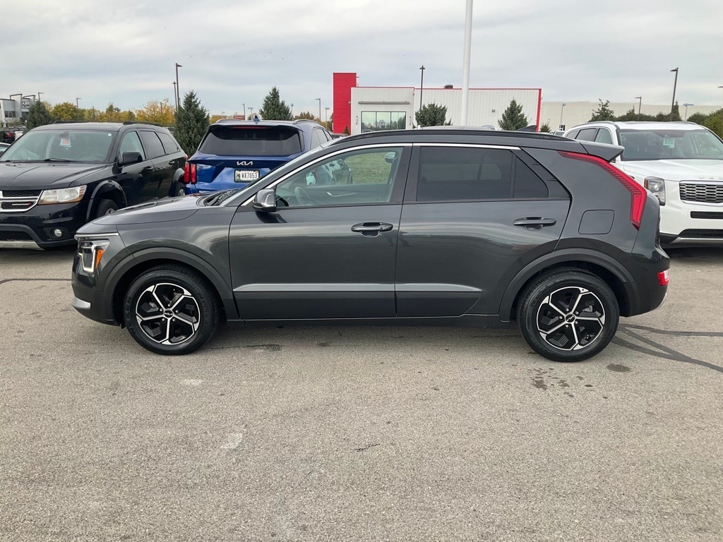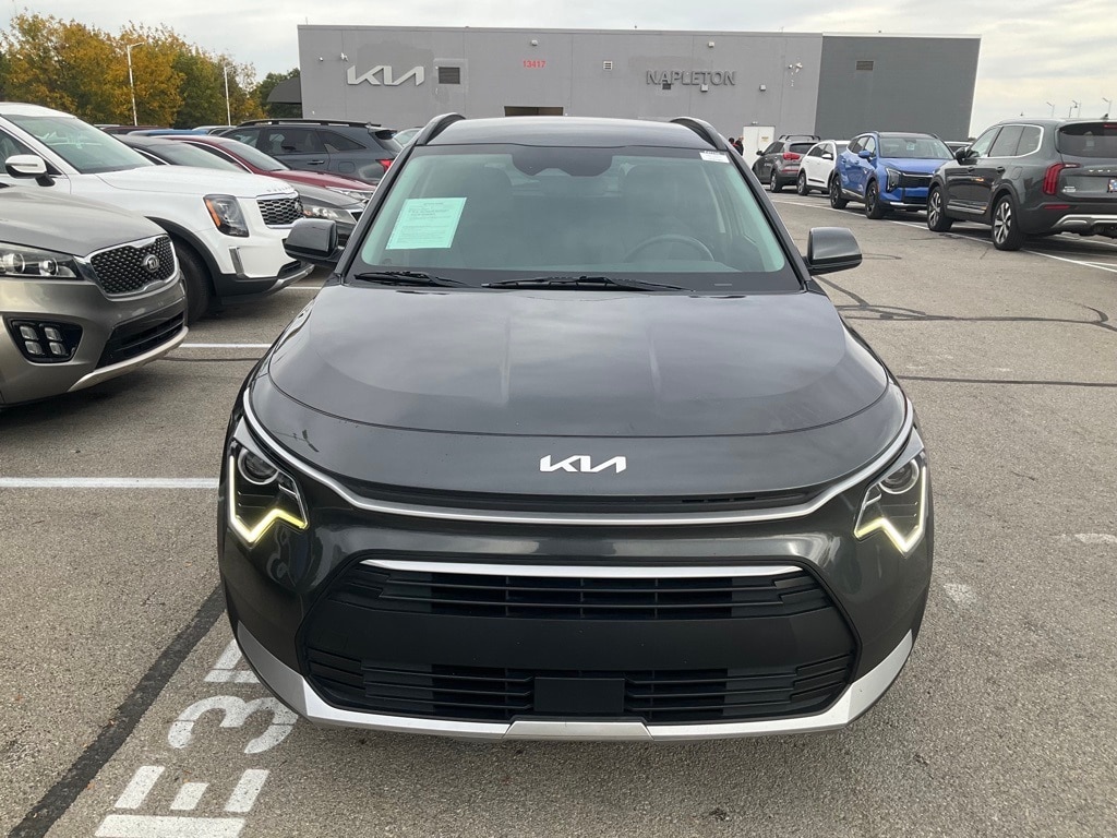 This Niro is well equipped with Niro EX, 4D Sport Utility, 1.6L I4 DGI Hybrid DOHC 16V LEV3-SULEV30, 6-Speed Automatic, FWD, Graphite Gray, Charcoal Cloth, Navigation System, 4-Wheel Disc Brakes, 4.438 Axle Ratio, 6 Speakers, ABS brakes, Air Conditioning, Alloy wheels, AM/FM radio: SiriusXM, Apple CarPlay & Android Auto, Auto High-beam Headlights, Automatic temperature control, Brake assist, Bumpers: body-color, Carpet Floor Mats, Cloth & Vegan Leather-Trimmed Seats, Delay-off headlights, Driver door bin, Driver vanity mirror, Dual front impact airbags, Dual front side impact airbags, Electronic Stability Control, Emergency communication system: Kia Connect (includes 1 year free trial), Exterior Parking Camera Rear, Four wheel independent suspension, Front anti-roll bar, Front Bucket Seats, Front Center Armrest, Front dual zone A/C, Front reading lights, Fully automatic headlights, Heated door mirrors, Heated Front Bucket Seats, Heated front seats, Illuminated entry, Knee airbag, Leather Shift Knob, Low tire pressure warning, Occupant sensing airbag, Outside temperature display, Overhead airbag, Overhead console, Panic alarm, Passenger door bin, Passenger vanity mirror, Power door mirrors, Power driver seat, Power steering, Power windows, Radio: AM/FM/HD/SiriusXM, Rain sensing wipers, Rear anti-roll bar, Rear seat center armrest, Rear window defroster, Rear window wiper, Remote keyless entry, Security system, Smart Key w/ Push Button and Remote Start, Speed control, Speed-sensing steering, Split folding rear seat, Spoiler, Steering wheel mounted audio controls, Telescoping steering wheel, Tilt steering wheel, Traction control, Trip computer, Turn signal indicator mirrors, Variably intermittent wipers, and Wheels: 16" Alloy Aero.