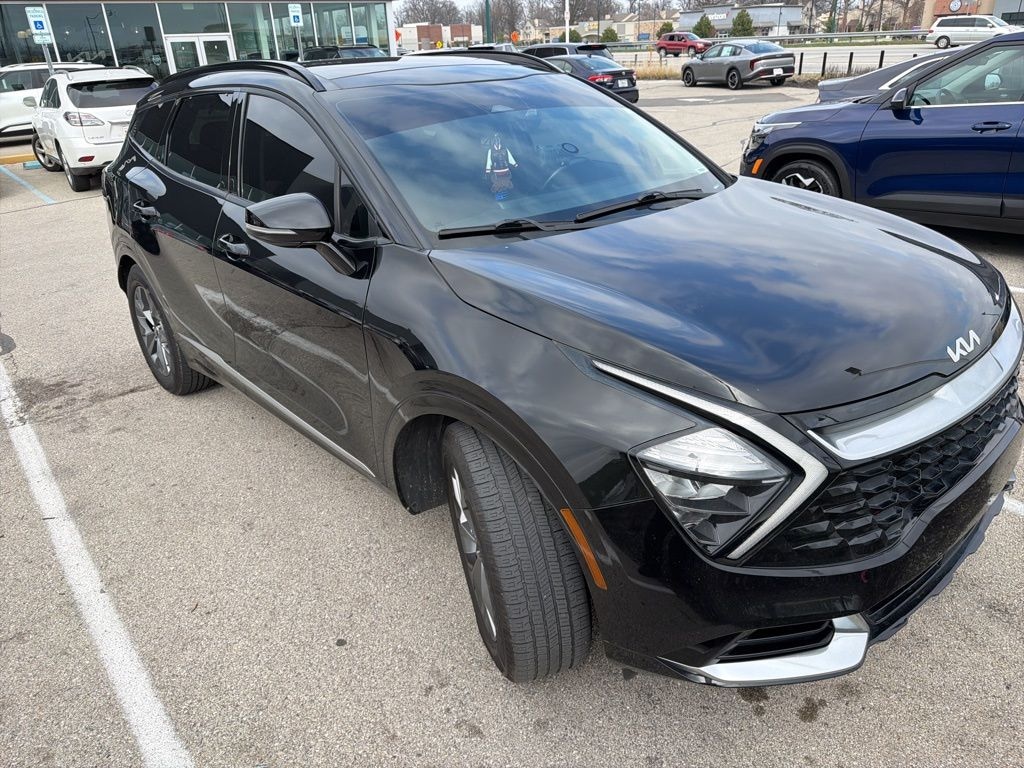 This Sportage is well equipped with Sportage SX, 4D Sport Utility, I4, 8-Speed Automatic, FWD, Ebony Black, Black Artificial Leather, Heated Front Bucket Seats, Leatherette Seat Trim, Navigation System, Power Liftgate, Power moonroof, Wheels: 18" Matte Gray Alloy, 4-Wheel Disc Brakes, 8 Speakers, ABS brakes, Air Conditioning, Alloy wheels, AM/FM radio: SiriusXM, Apple CarPlay & Android Auto, Auto High-beam Headlights, Auto-dimming Rear-View mirror, Automatic temperature control, Axle Ratio: 3.648, Brake assist, Bumpers: body-color, Cargo Mat, Cargo Mat w/Seatback Protection, Carpeted Floor Mats, Compass, Delay-off headlights, Driver door bin, Driver vanity mirror, Dual front impact airbags, Dual front side impact airbags, Electronic Stability Control, Emergency communication system, Four wheel independent suspension, Front anti-roll bar, Front Bucket Seats, Front Center Armrest, Front dual zone A/C, Front reading lights, Fully automatic headlights, Garage door transmitter: HomeLink, harman/kardon® Speakers, Heated door mirrors, Heated front seats, Illuminated entry, Leather Shift Knob, Leather steering wheel, Low tire pressure warning, Memory seat, Occupant sensing airbag, Outside temperature display, Overhead airbag, Overhead console, Panic alarm, Passenger door bin, Passenger vanity mirror, Power door mirrors, Power driver seat, Power steering, Power windows, Radio: AM/FM/HD Audio System, Rain sensing wipers, Rear anti-roll bar, Rear reading lights, Rear seat center armrest, Rear window defroster, Rear window wiper, Remote keyless entry, Security system, Speed control, Speed-sensing steering, Split folding rear seat, Spoiler, Steering wheel mounted audio controls, Tachometer, Telescoping steering wheel, Tilt steering wheel, Traction control, Trip computer, Turn signal indicator mirrors, and Variably intermittent wipers.