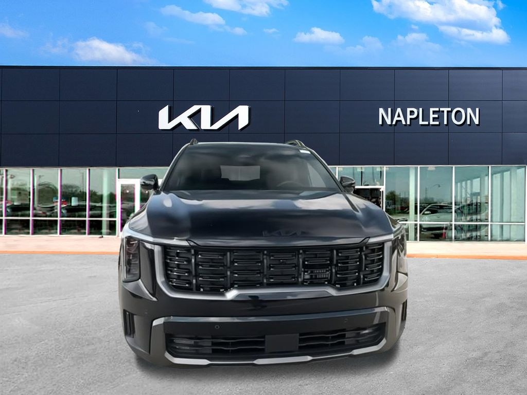Napleton Certified, Sorento X-Line SX Prestige, 4D Sport Utility, 2.5L I4 DGI Turbocharged DOHC 16V LEV3-SULEV30 281hp, 8 Speed Dual Clutch, AWD, Ebony Black, Black Leather, 12 Speakers, 3rd row seats: split-bench, 4-Wheel Disc Brakes, ABS brakes, Air Conditioning, Alloy wheels, AM/FM radio: SiriusXM, Apple CarPlay & Android Auto, Auto High-beam Headlights, Auto-dimming Rear-View mirror, Automatic temperature control, Brake assist, Bumpers: body-color, Carpeted Floor Mats, Delay-off headlights, Driver door bin, Driver vanity mirror, Dual front impact airbags, Dual front side impact airbags, Electronic Stability Control, Emergency communication system: 911 Connect, Exterior Parking Camera Rear, Four wheel independent suspension, Front anti-roll bar, Front Bucket Seats, Front Center Armrest, Front dual zone A/C, Front fog lights, Front reading lights, Fully automatic headlights, Garage door transmitter: HomeLink, Heated & Ventilated Front Bucket Seats, Heated door mirrors, Heated front seats, Heated rear seats, Heated steering wheel, Illuminated entry, Knee airbag, Leather steering wheel, Low tire pressure warning, Memory seat, Navigation System, Occupant sensing airbag, Outside temperature display, Overhead airbag, Overhead console, Panic alarm, Passenger door bin, Passenger vanity mirror, Perforated Genuine Leather Seat Trim, Power door mirrors, Power driver seat, Power Liftgate, Power moonroof, Power passenger seat, Power steering, Power windows, Radio data system, Radio: AM/FM Bose Premium Audio System, Rain sensing wipers, Rear anti-roll bar, Rear reading lights, Rear side impact airbag, Rear window defroster, Rear window wiper, Remote keyless entry, Security system, Speed control, Speed-sensing steering, Split folding rear seat, Spoiler, Steering wheel mounted audio controls, Tachometer, Telescoping steering wheel, Tilt steering wheel, Traction control, Trip computer, Turn signal indicator mirrors, Variably intermittent wipers, Ventilated front seats, Wheels: 20" Gloss Black X-Line Alloy, Sorento X-Line SX Prestige, 4D Sport Utility, 2.5L I4 DGI Turbocharged DOHC 16V LEV3-SULEV30 281hp, 8 Speed Dual Clutch, AWD, Ebony Black, Black Leather.