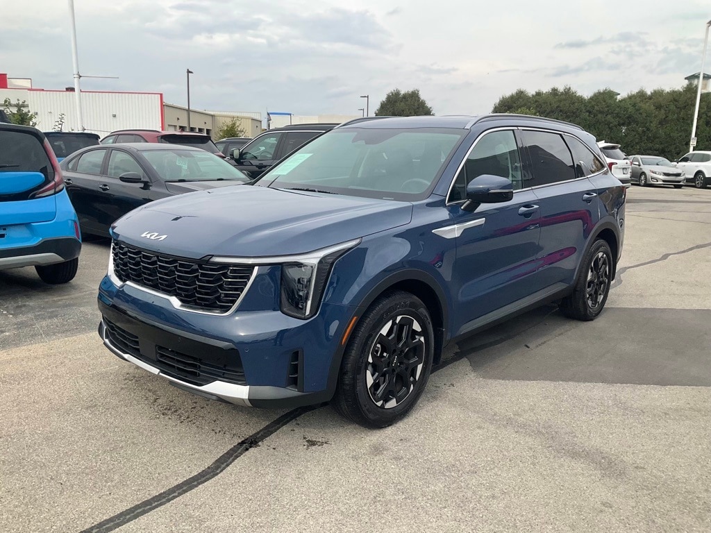 This Sorento is well equipped with Sorento S, 4D Sport Utility, 2.5L I4 DGI DOHC 16V LEV3-SULEV30 191hp, 8-Speed Automatic, FWD, Midnight Lake Blue, Black Artificial Leather, 3rd row seats: split-bench, 4-Wheel Disc Brakes, 6 Speakers, ABS brakes, Active Cruise Control, Air Conditioning, Alloy wheels, AM/FM radio: SiriusXM, Apple CarPlay & Android Auto, Auto High-beam Headlights, Automatic temperature control, Brake assist, Bumpers: body-color, Cargo Tray, Carpeted Floor Mats, Delay-off headlights, Driver door bin, Driver vanity mirror, Dual front impact airbags, Dual front side impact airbags, Electronic Stability Control, Emergency communication system: 911 Connect, Exterior Parking Camera Rear, Four wheel independent suspension, Front anti-roll bar, Front Bucket Seats, Front Center Armrest, Front dual zone A/C, Front reading lights, Fully automatic headlights, Heated door mirrors, Heated Front Bucket Seats, Heated front seats, Illuminated entry, Knee airbag, Leather Shift Knob, Leather steering wheel, Low tire pressure warning, Mudguards, Navigation System, Occupant sensing airbag, Outside temperature display, Overhead airbag, Overhead console, Panic alarm, Passenger door bin, Passenger vanity mirror, Power door mirrors, Power driver seat, Power steering, Power windows, Radio data system, Radio: AM/FM Standard Sound System, Rear anti-roll bar, Rear reading lights, Rear seat center armrest, Rear side impact airbag, Rear window defroster, Rear window wiper, Remote keyless entry, Security system, Speed control, Speed-sensing steering, Split folding rear seat, Spoiler, Steering wheel mounted audio controls, SynTex Artificial Leather Seat Trim, Tachometer, Telescoping steering wheel, Tilt steering wheel, Traction control, Trip computer, Turn signal indicator mir