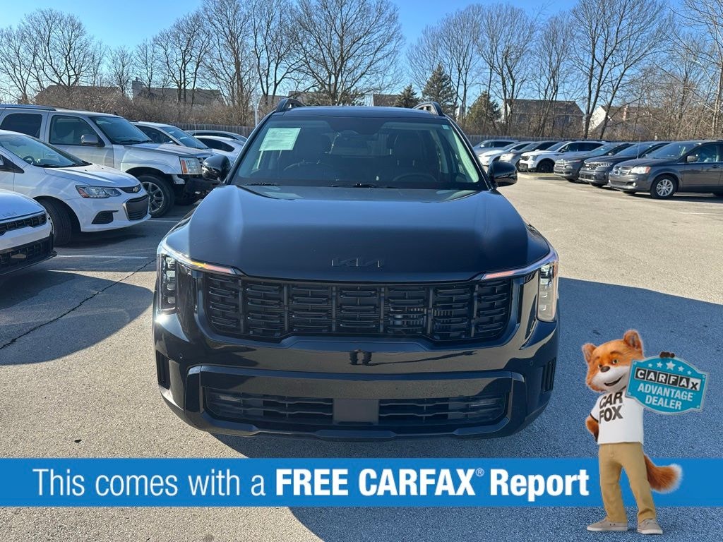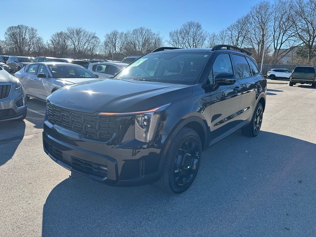 This Sorento is well equipped with Sorento EX, 4D Sport Utility, 2.5L I4 DGI Turbocharged DOHC 16V LEV3-SULEV30 281hp, 8 Speed Dual Clutch, AWD, Ebony Black, Black Artificial Leather, Power Liftgate, 3rd row seats: split-bench, 4-Wheel Disc Brakes, ABS brakes, Air Conditioning, Alloy wheels, AM/FM radio: SiriusXM, Apple CarPlay & Android Auto, Auto High-beam Headlights, Auto-dimming Rear-View mirror, Automatic temperature control, Brake assist, Bumpers: body-color, Carpeted Floor Mats, Delay-off headlights, Driver door bin, Driver vanity mirror, Dual front impact airbags, Dual front side impact airbags, Electronic Stability Control, Emergency communication system: 911 Connect, Exterior Parking Camera Rear, Four wheel independent suspension, Front anti-roll bar, Front Bucket Seats, Front Center Armrest, Front dual zone A/C, Front fog lights, Front reading lights, Fully automatic headlights, Heated door mirrors, Heated Front Bucket Seats, Heated front seats, Illuminated entry, Knee airbag, Leather Shift Knob, Leather steering wheel, Low tire pressure warning, Navigation System, Occupant sensing airbag, Outside temperature display, Overhead airbag, Overhead console, Panic alarm, Passenger door bin, Passenger vanity mirror, Power door mirrors, Power driver seat, Power passenger seat, Power steering, Power windows, Radio data system, Radio: AM/FM Standard Sound System, Rear anti-roll bar, Rear reading lights, Rear side impact airbag, Rear window defroster, Rear window wiper, Remote keyless entry, Security system, Speed control, Speed-sensing steering, Split folding rear seat, Spoiler, Steering wheel mounted audio controls, SynTex Artificial Leather Seat Trim, Tachometer, Telescoping steering wheel, Tilt steering wheel, Traction control, Trip computer, Turn signal indicator mirrors, and Variably intermittent wipers.