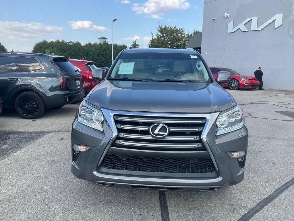 This GX is well equipped with GX 460 Luxury, 4D Sport Utility, 4.6L V8 DOHC Dual VVT-i 32V, 6-Speed Automatic with Sequential Shift ECT, 4WD, Knights Armor Pearl, Ecru w/Perforated Leather Seat Trim, 3rd row seats: split-bench, Heated & Ventilated Front Bucket Seats, Heated rear seats, Navigation System, Power moonroof, Radio: AM/FM Lexus Premium Audio, Remote Engine Start (RES), 3.909 Axle Ratio, 4-Wheel Disc Brakes, 9 Speakers, ABS brakes, Adaptive suspension, Air Conditioning, Alloy wheels, AM/FM radio: SiriusXM, Anti-whiplash front head restraints, Auto tilt-away steering wheel, Auto-dimming door mirrors, Auto-dimming Rear-View mirror, Auto-leveling suspension, Automatic temperature control, Bodyside moldings, Brake assist, Bumpers: body-color, CD player, Compass, Delay-off headlights, Driver door bin, Driver vanity mirror, Driver's Seat Mounted Armrest, Dual front impact airbags, Dual front side impact airbags, Electronic Stability Control, Emergency communication system: Safety Connect, Exterior Parking Camera Rear, Front anti-roll bar, Front Bucket Seats, Front dual zone A/C, Front fog lights, Front reading lights, Front wheel independent suspension, Fully automatic headlights, Garage door transmitter: HomeLink, Genuine wood console insert, Genuine wood dashboard insert, Genuine wood door panel insert, Headlight cleaning, Heated door mirrors, Heated front seats, Heated steering wheel, High intensity discharge headlights: Xenon, Illuminated entry, Illuminated running boards, Knee airbag, Leather Shift Knob, Leather steering wheel, Low tire pressure warning, Memory seat, Occupant sensing airbag, Outside temperature display, Overhead airbag, Overhead console, Panic alarm, Passenger door bin, Passenger seat mounted armrest, Passenger vanity mirror, Power door mirrors, Power driver seat, Power passenger seat, Power steering, Power windows, Radio data system, Rain sensing wipers, Rear air conditioning, Rear anti-roll bar, Rear reading lights, Rear seat center armrest, Rear side impact airbag, Rear window defroster, Rear window wiper, Remote keyless entry, Roof rack: rails only, Security system, Semi-Aniline Leather Seats, Speed control, Speed-sensing steering, Split folding rear seat, Spoiler, Steering wheel memory, Steering wheel mounted audio controls, Tachometer, Telescoping steering wheel, Tilt steering wheel, Traction control, Trip computer, Turn signal indicator mirrors, Variably intermittent wipers, Ventilated front seats, and Wheels: 18" x 7.5" Split 6-Spoke Aluminum Alloy.
