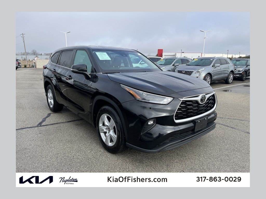 This Highlander is well equipped with Highlander LE, 4D Sport Utility, 2.4L I4 PDI Turbocharged DOHC 16V LEV3-SULEV30 265hp, 8-Speed Automatic, FWD, Midnight Black Metallic, Black Cloth, Power Liftgate, 18" Painted Alloy Wheels, 3.329 Axle Ratio, 3rd row seats: split-bench, 4-Wheel Disc Brakes, 6 Speakers, ABS brakes, Air Conditioning, Alloy wheels, AM/FM radio: SiriusXM, Apple CarPlay/Android Auto, Auto High-beam Headlights, Automatic temperature control, Brake assist, Bumpers: body-color, Delay-off headlights, Driver door bin, Driver vanity mirror, Dual front impact airbags, Dual front side impact airbags, Electronic Stability Control, Emergency communication system: Safety Connect (up to 10-year trial subscription), Exterior Parking Camera Rear, Fabric Seat Trim, Four wheel independent suspension, Front anti-roll bar, Front Bucket Seats, Front Center Armrest, Front dual zone A/C, Front fog lights, Front reading lights, Fully automatic headlights, Heated door mirrors, Illuminated entry, Knee airbag, Leather Shift Knob, Leather steering wheel, Low tire pressure warning, Occupant sensing airbag, Outside temperature display, Overhead airbag, Overhead console, Panic alarm, Passenger door bin, Passenger vanity mirror, Power door mirrors, Power driver seat, Power steering, Power windows, Radio: 8" Toyota Audio Multimedia, Rear air conditioning, Rear anti-roll bar, Rear reading lights, Rear seat center armrest, Rear window defroster, Rear window wiper, Reclining 3rd row seat, Remote keyless entry, Security system, Speed control, Speed-sensing steering, Split folding rear seat, Spoiler, Steering wheel mounted audio controls, Tachometer, Telescoping steering wheel, Tilt steering wheel, Traction control, Trip computer, Turn signal indicator mirrors, and Variably intermittent wipers.